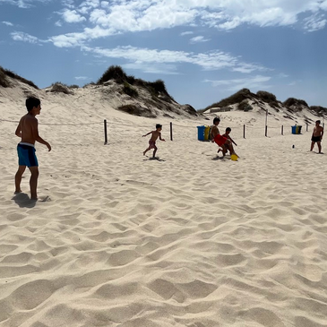 Ein schier unendlicher Sandstrand zwischen Pinien und Dünen mit diversen Cafés & Restaurants zur Auswahl oberhalb des Strandes