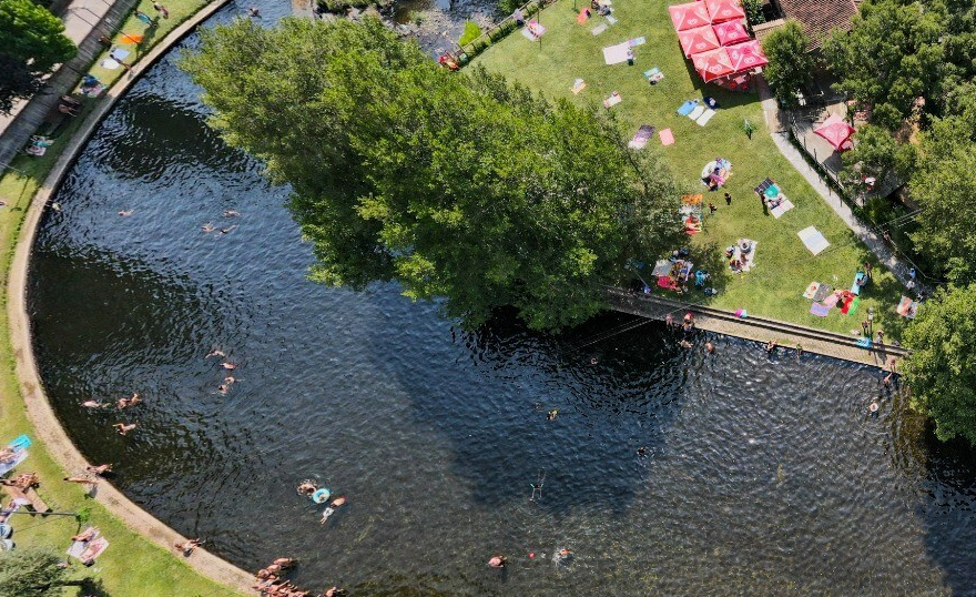Rio natural para banhos e relaxamento, com bar de bebidas e snacks